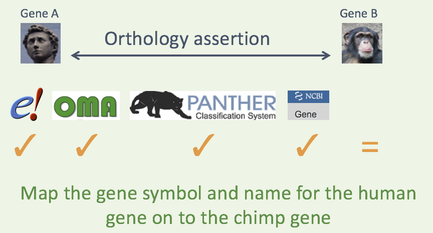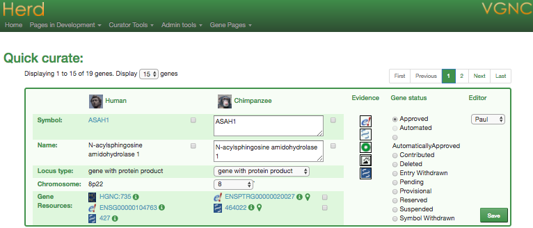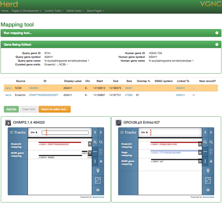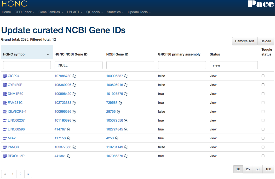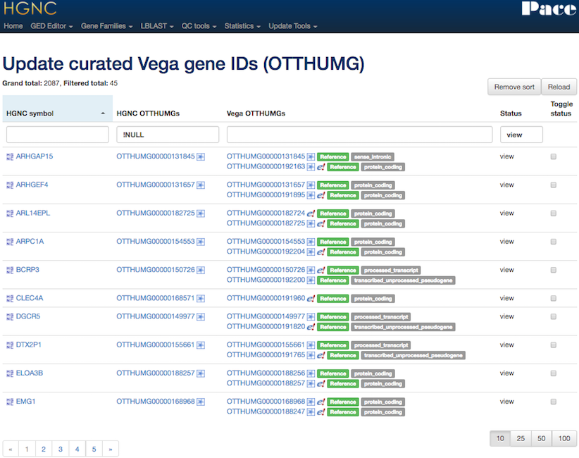 We can use the NCBI gene ID that we have attached to the record to curate links to Ensembl, Vega* and pseudogene.org*