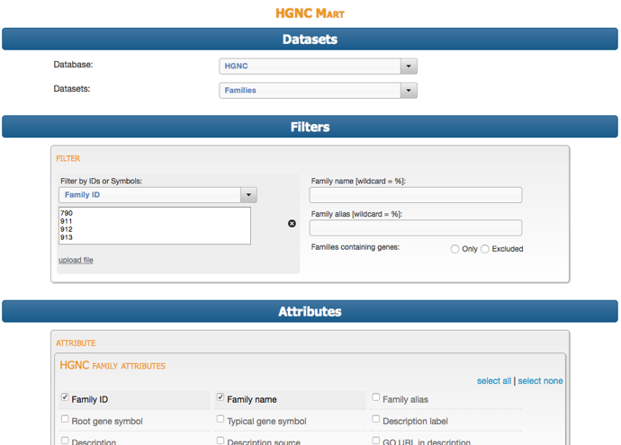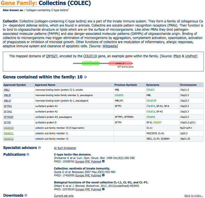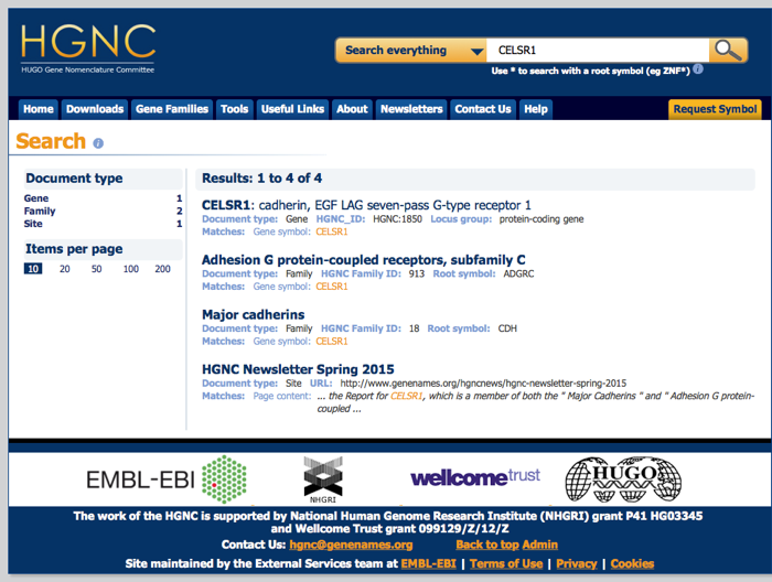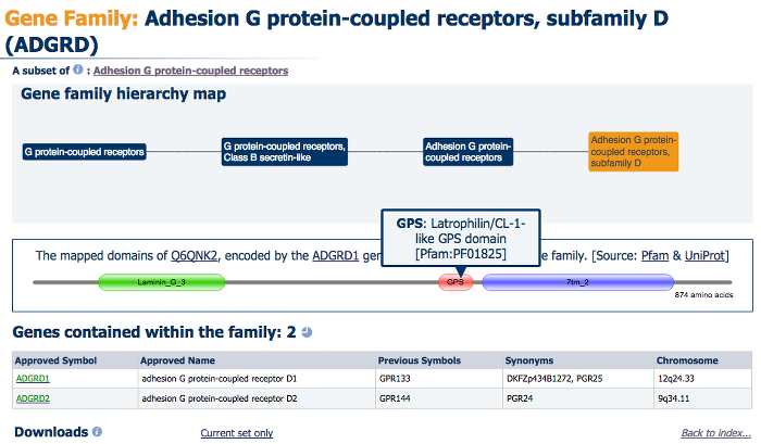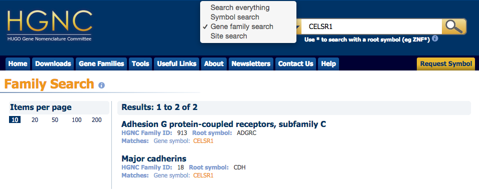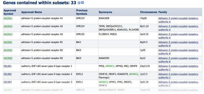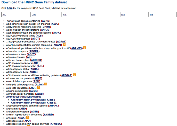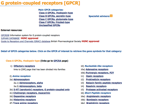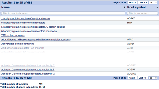 Clicking on a family within the index would take you to a family report page written by a HGNC curator within Drupal.