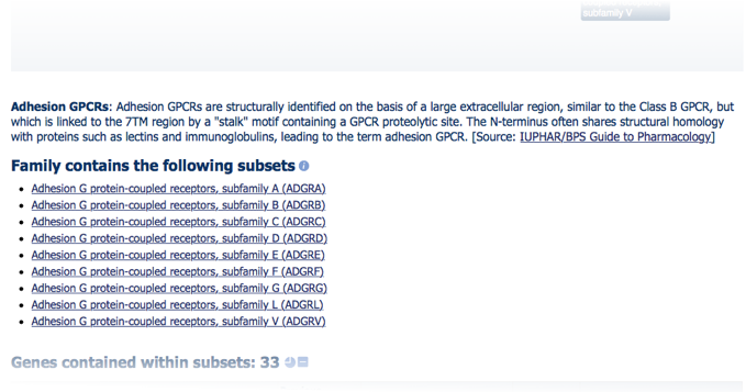 For some of the families a hierarchy was created within drupal to split the family down into subsets such as the G protein coupled receptors. In terms of a envisioning families as a tree, node families contained sub-families and leaf families contained genes.