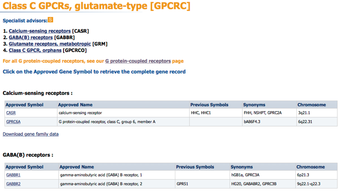 To download a family gene set, the user can click on the "download gene family data" link for each table.