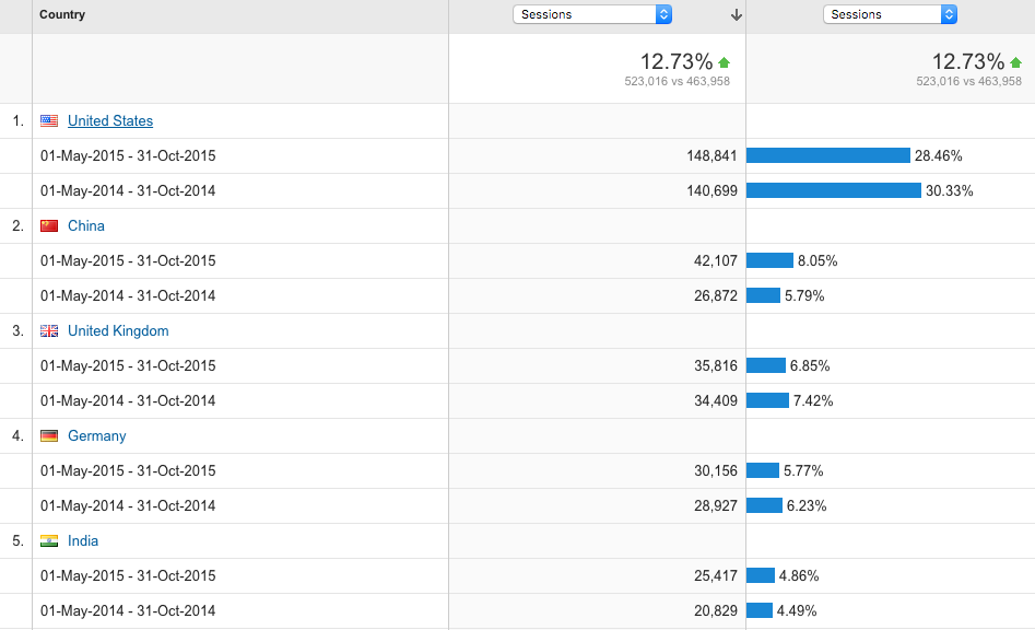US is by far the biggest user of our resources, however the number of sessions from China has increased by 57%.