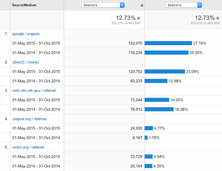 | Oct 2015 | 262,586 ↑6% | Gene symbol reports | 127,275 | 45% |
